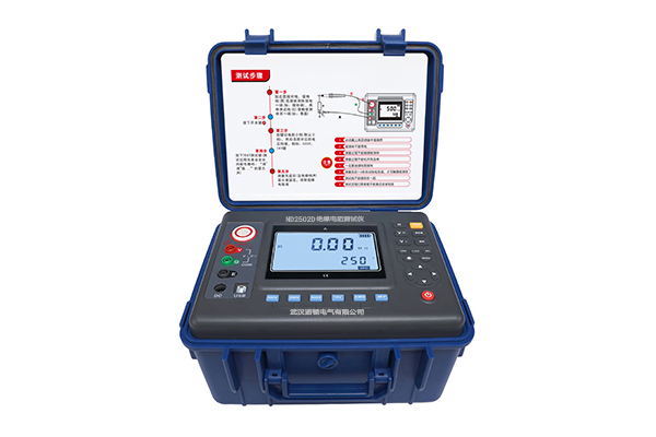 ND2502D數字式絕緣電阻測試儀又名兆歐表、高壓絕緣電阻測試儀等,用于絕緣電阻的測試。本儀表具有LCD大屏幕灰白背光顯示、數據存儲、數據查閱、報警、自動關機等功能。同時還具備測量直流電壓交流電壓吸收比和極化指數功能。整機美觀高檔,量程寬廣,分辨率高,操作便捷,攜帶方便,準確、可靠、性能穩定,抗干擾能力強。而且具有防震、防塵、防潮結構,是電信、電力、氣象、機房、油田、機電安裝和維修以及利用電力作為工業動力或能源的工業企業部門常用而必不可少的儀表。它適用于測量各種絕緣材料的電阻值及變壓器、電機、電纜及電器設備等的絕緣電阻。