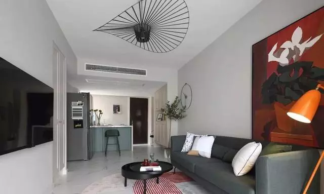 客廳里沒有明確去追求風格化的電視背景墻或沙發背景墻,反而用油畫這種可替換的軟裝飾品來代替,又實用又好看。