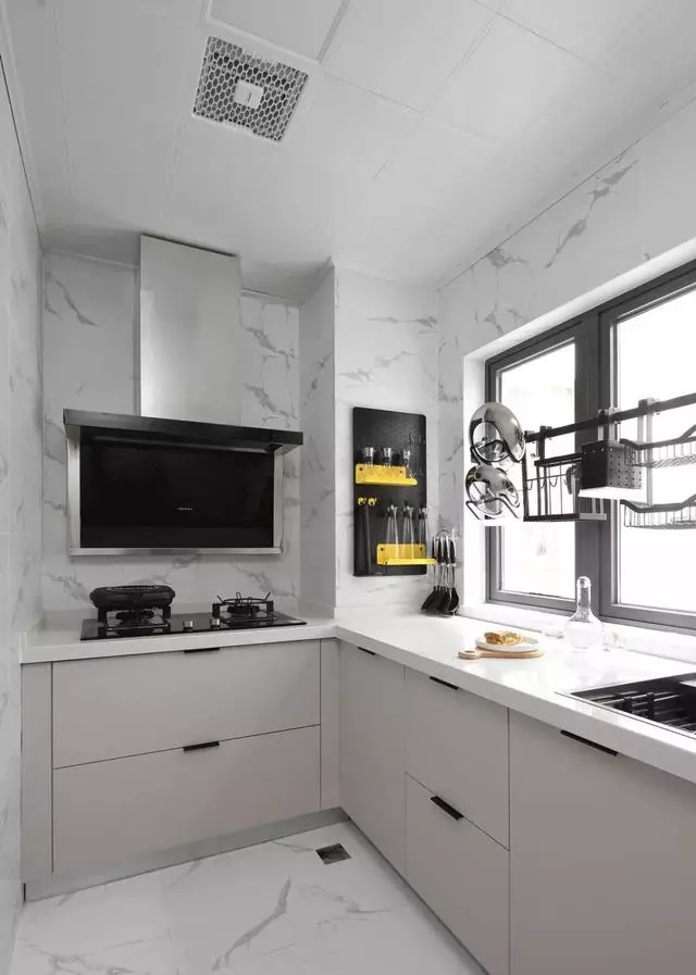 廚房空間采用明亮的色調,從視覺上放大空間,看上去不會過于狹小。合理利用墻面進行收納,小空間倒也干凈整潔。