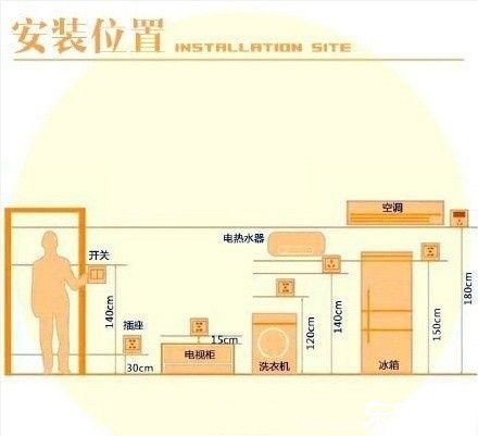 1.電控開關:電源開關離地面最好在120~135厘米之間(總開關的高度和成年肩高);