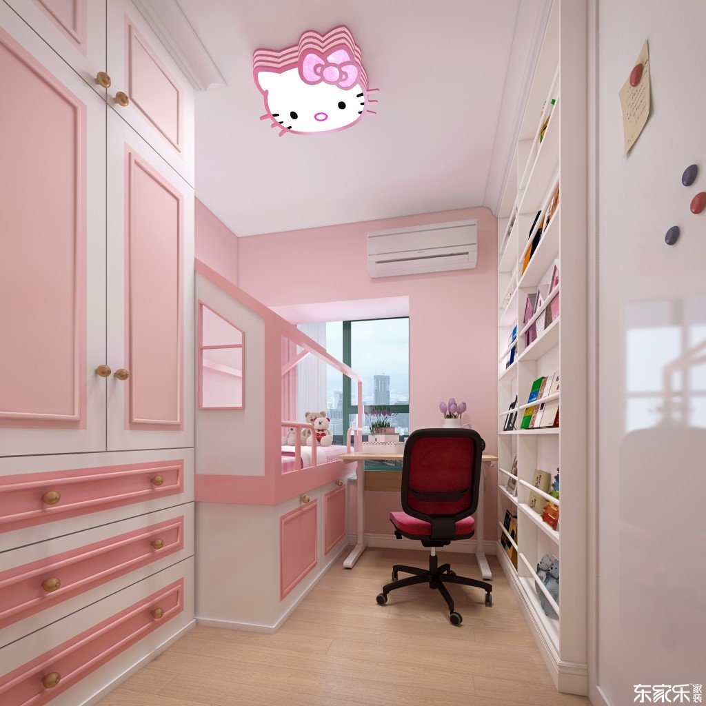 歐式風格,特地要求設計了一間粉紅色可愛風的特色房間。