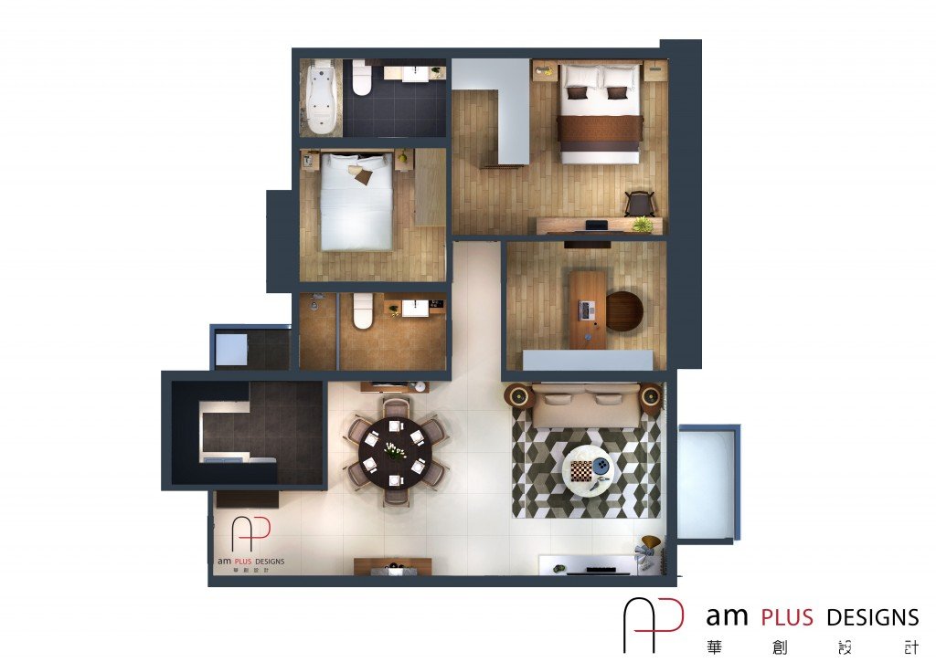 一般情況下,這樣3D Rendering配合其他平面/立面圖紙,已經足夠表達設計效果及作討論之用,但如果客戶的設計時間相對寬松,間隔比較復雜的情況下,亦可增加3D Floor Plan作額外的輔助展示。