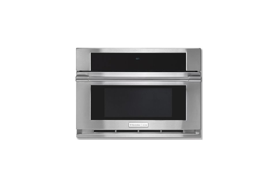 上圖:帶有下拉門的Electrolux Icon Professional Built-in Microwave提供傳感器和對流烹飪模式;