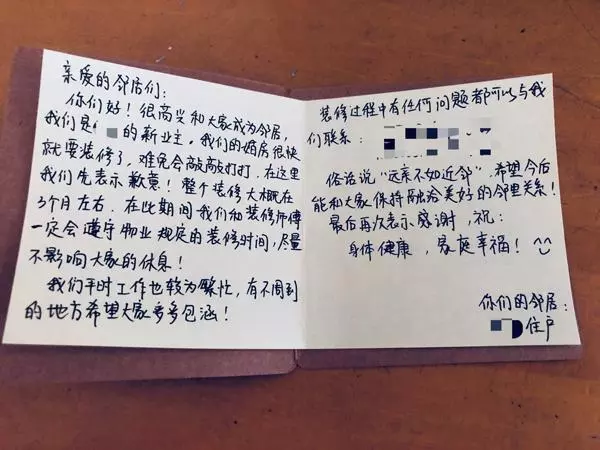 現代社會,生活節奏快,讓鄰里關系變得簡單,也多了一點距離。但是這并不意味著自己家里的事兒打擾了別人,也可以置之不理。這對情侶能主動聯系并提前告知他人裝修的事兒,就很好地實現了溝通,給將來可能發生的摩擦事先涂上了一層潤滑劑,不至于發生嚴重的沖突。