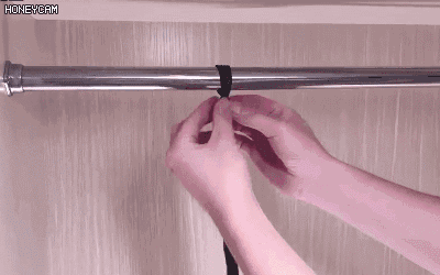 安裝簡易窗簾時使用的吊環,也能讓一個普普通通的衣架功能升級。你瞧!有了這些吊環,圍巾、絲巾再多也不怕,統統都能掛起來,不占空間還方便拿取。